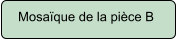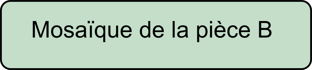 De forme allongée (5 mètres X 2,5 mètres), la pièce B nous a livré un belle mosaïque blanche et noire dont les dessins forment des croix grecques. Elle est conservée au musée archéologique.Ledécormural,quoiquetrèsincomplet,apuêtrereconstitué.Lespeintures deszonesbassesetmédianesimitentlemarbre.Lapartiesupérieureaux grandscerclesvertsavecdisquesrougesoubleusavecfleuronévoquentle papier peint.LapièceC,auxdimensionssimilairesétaitornéede panneauxrougessurlesquelssedétachentdes pommesdontlepeintreasuadmirablementrestituerle relief et la lumière.Le pavement de cette pièce n’a pas été retrouvé.